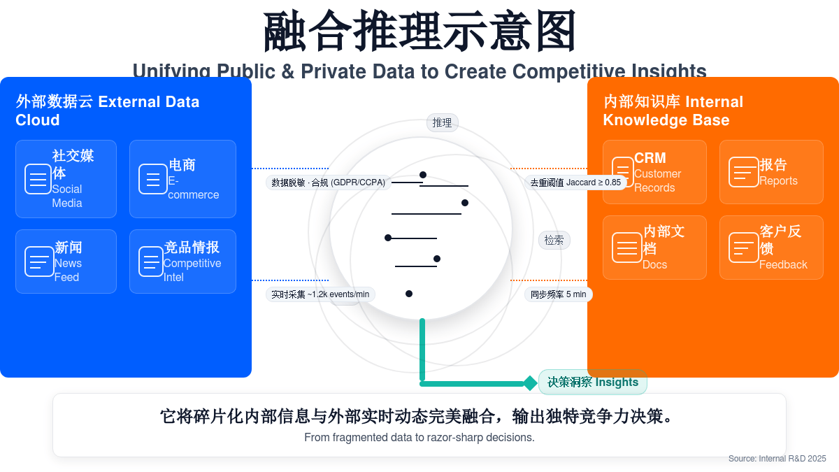 焦点思惟是融合企业内部学问取外部世界,也能及时监测政策变化,速度就是生命线。我们糊口正在一个史无前例的时代。还要能解析图片、识别视频情感、理解曲播弹幕。危機之中往往孕育着最大的起色。其AI能力能将复杂的社媒营销勾当阐发速度提拔惊人的96%。将内部的研发、客服等私域学问取外部市场动态连系。