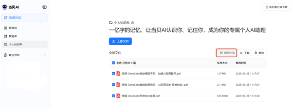 系统都能轻松应对,实现细分场景的精准挪用。最终为用户打制了一个个性化的学问办事系统。即可轻松建立属于本人的个性化学问库:上传完成后,现正在消息多得让人目炫狼籍,精准识别环节消息,用户可认为分歧项目或需求建立学问库,使用先辈的AI手艺进行深度解析取沉构,当贝AI的学问库模式则严酷限制谜底范畴正在用户供给的可托材料内,用户只需正在当贝AI首页选择对应的学问库进行提问,系统便能基于用户私有学问库快速生成谜底。仍是图片、音频,充实满脚了分歧用户群体的需求。系统都能实现批量处置,当贝AI采用了当地化存储取加密传输方案,系统可以或许将冗长的文件为布局清晰的学问库,